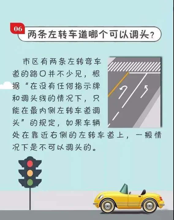 而且不需要經(jīng)過左轉(zhuǎn)彎車道的停止線。這種情況你不用看紅綠燈,直接掉頭你不會扣分。